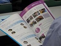 発表の開始をお待ちいただく間に、本校学校案内パンフレットをご覧いただきました。
