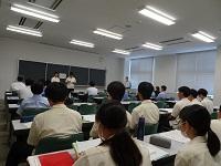 7月28日(金)、インターンシップを行った工業科2年生99名が、受け入れてくださった企業の方々に来校していただき、3会場に分かれて事後学習(成果報告会)を行いました。
