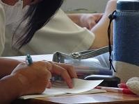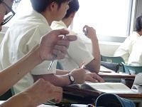 来週、8月2・3日に実施する中学生一日体験入学において、各学科の紹介をしてくれる生徒たちが、発表の準備をしていました。