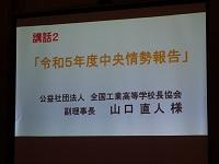続いて、全国工業高等学校長協会副理事長(愛知県立愛知総合工科高等学校)山口直人様から、「令和5年度中央情勢報告」について講話をいただきました。