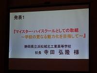 研究協議会では、本県から、浜松城北工業高校の寺田弘隆校長が、「マイスタースクールとしての取組 ~学校の更なる魅力化を目指して~」というテーマで発表を行いました。