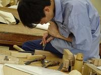 建築デザイン科の生徒たちが木工の練習をしていました。