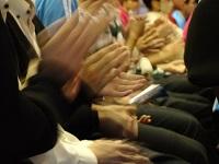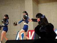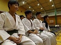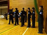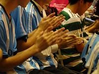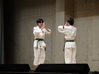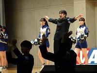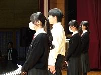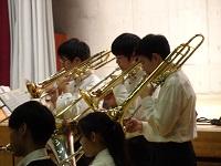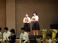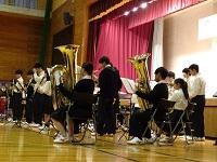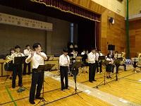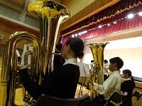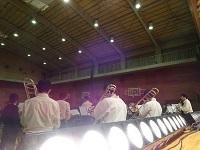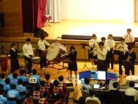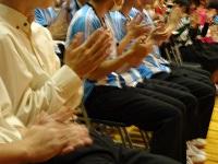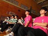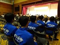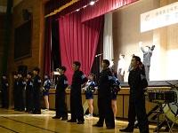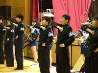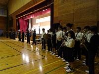先にステージを終えた吹奏楽部の生徒たちが見守っています。
