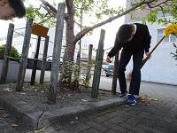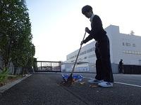 早朝、落ち葉を掃き掃除してくれている生徒たちがいました。