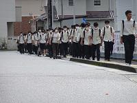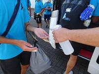 早朝、ラグビー部の生徒たちが、合宿に出発する準備を整えていました。