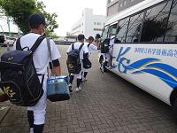 早朝、野球部が試合を行うため磐田市へ向けて出発しました。