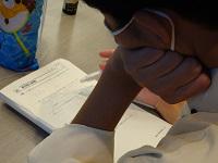 水口さんが部員ひとりひとりに切り絵のステッカーをプレゼントしてくださいました。