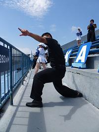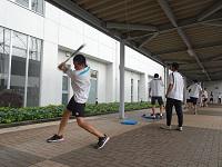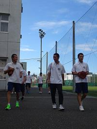 天気が回復し、青空の下、野球部が練習を開始していました。