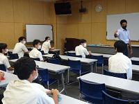 8月22日(月)から始まる本番を前に、参加生徒たちが視聴覚室に集まり、アメリカ・ワシントン州にいる前田伸二さんとオンラインによるセッションを行いました。