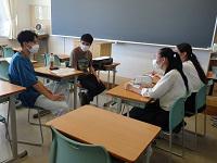 説明会に続いて、3年生との個別相談会を行いました。先輩から、大学、学部・学科の特色や、いま大学でどんな学びをしているのか、学生生活の様子などを教えてもらっていました。また、先輩から後輩へ、受験に向けた具体的なアドバイスをしてもらい、在校生たちが進路意識を高めているのを感じ取ることができました。
