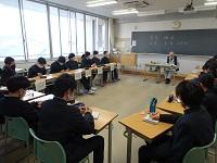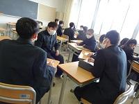 理数科2年生のLHRでは、志望大学に合格し、春から大学生になる3年生の先輩たちから、勉強の仕方や志望校合格へのアドバイス等を受けていました。