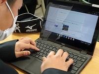 短縮日課での授業です。1年生はクロームブックを使って授業を受けています。