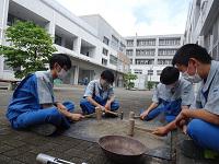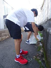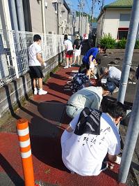 地元自治会の方々も参加してくださり、一緒に作業しながら会話も弾み、「部活動がんばれ!」などたくさんの激励のお言葉をいただきました。