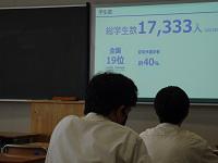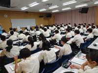 進路希望別に、大学・企業・公務員のガイダンスを行うことで、進路実現に向けての目標を明確にすることが目的です。3年時の科目選択に向けて、積極的な選択の動機を持つきっかけをつくり、進路希望先への理解を深め、進路研究の一助とします。就職希望者は、業種業界の理解を進めていきます。