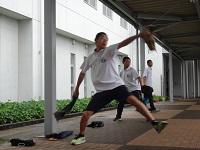 早朝の体育館では、明日の大会を目前に控え、自主的に練習に励む生徒たちの姿がみられました。