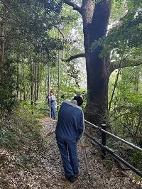 毎週金曜2~4時限目に、谷津山縦断測量の実習を行っています。このデータを編集し、愛宕神社に奉納します。