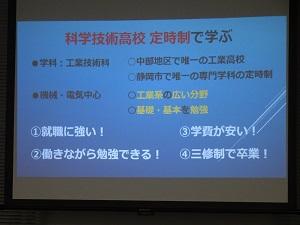 9月15日(金)夜、「第1回 定時制の課程 学校説明会・校内見学」を開催しました。静岡市内や遠方からも、多くの中学生と保護者の皆さまが参加してくださいました。