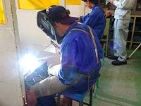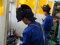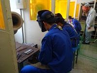 9月16日(土)、機械工学科1年生が、溶接実技の練習に取り組んでいました。