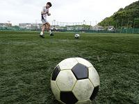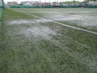 昨日からの雨で人工芝のグラウンドに水たまりができていました。