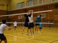 体育館ではバドミントン部やバレーボール部が朝練習に励んでいました。