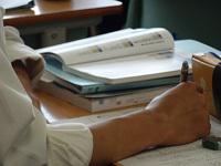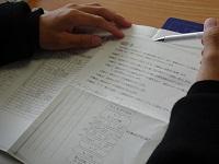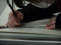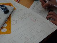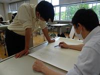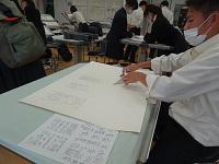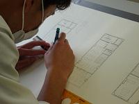 建築デザイン科3年生が、製図の課題を提出し、先生からアドバイスを受けていました。