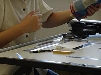カップ麺の容器などにドライヤーの風を当て、どれが一番飛ぶかを予想し、確認する実験を行いました。