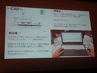 研究発表は、岐阜県立中津川工業高校土木工学科の佐々木先生から、「CIMを取り入れた実習について」のプレゼンテーションをしていただきました。