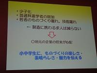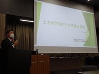 本校都市基盤工学科の内村教諭から、「土木系学科における防災教育」についてプレゼンテーションした後、小グループに分かれて研究協議を行いました。