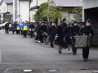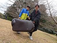 学校から楽器やイスなどを会場に運びます。運動部の生徒たちが協力してくれました。