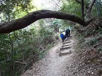 険しい道のりをアップダウンしながら山頂のピクニック広場を目指します。