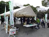 麓の護国神社で出発式が行われました。始まる前から、受付には大勢の参加者のみなさんが集まっていました。