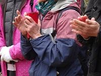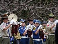 運動部の生徒たちが、再び山頂に登ってきてくれました。学校まで楽器を運搬してくれました。