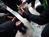 また、応援の気持ちを小袋に込めて、ひとりひとりに渡してもらいました。