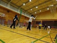 体育館で体を動かしながら親睦を深めているクラスもありました。