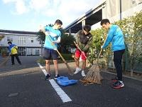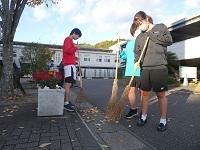 早朝、落ち葉を掃き集めたり、校内各所を清掃してくれていました。