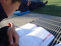 前回り受け身を撮影し、自分ではつかみにくい実際の動きを確認していました。