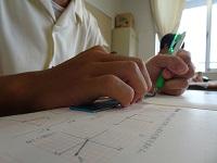 6月26日(月)、放課後、建築デザイン科の生徒たちが製図に取り組んでいました。