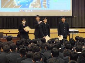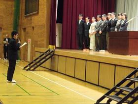 3年生にとっては、これから歩む人生を左右する重要な時期を迎えることになります。達成感、喜び、不安、焦り等いろいろな思いが交錯することと思いますが、学年主任の先生の話にもあったように、思いやりの気持ちを忘れないようにしてください。