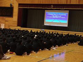 8月28日(水)、3年生は学年集会を行ない、学年主任の先生から次の2つのお話がありました。