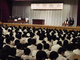 全体集会では教務課の先生から、選択科目登録時の注意事項や登録用紙の書き方の説明があり、そのあと共通科目である数学と英語について各教科の先生から履修条件や科目内容の説明がありました。最後に学年主任の先生から、「進路は進学か就職かを考えるのではなく、立派な人間としてどうしたら生きていけるかを考えること。将来も見据え今何を学ぶのがよいのかをよく考えること。」とのお話がありました。