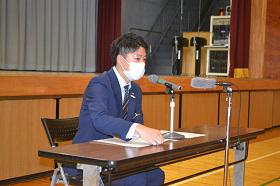 続いて、教務課と生徒課からそれぞれ年末年始に新型コロナウイルス、特にオミクロン株の流行が懸念されるため、感染予防を徹底し元気に新学期を迎えられるよう呼びかけがありました。また、冬休みは短いがSNSのトラブルや自転車の運転(無灯火、イヤホン)に十分注意し、一年を振り返り家族とゆっくり過ごしてほしいと話がありました。