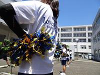 駐輪場に集合する応援指導部の生徒たち。