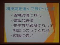 休憩時間に本校の学校案内パンフレットが配布され、科学技術高校の各学科の内容などを読んでくれていました。
