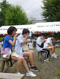 生徒たちは、こども向けコーナーのお手伝いや名物の焼きそば屋台の補助など、地元の方々と一緒になって生き生きと活動していました。