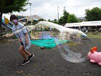 また、科学技術高校のブースを設けさせていただき、小さなこどもから大人まで、思い思いにジャンボしゃぼんだまに挑戦してもらいました。