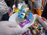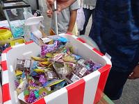 景品のお菓子が山積み。