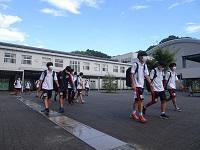 早朝、サッカー部の生徒たちが、富士総合運動公園で行われる試合に向かいました。