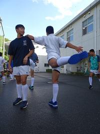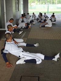 ラグビー部の生徒たちが練習を始める準備をしていました。