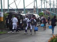 野球部は草薙球場で試合を行います。保護者の皆様の車に荷物を積み込んでいました。