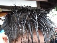 雨で髪が濡れてしまいました。風邪をひかないように。